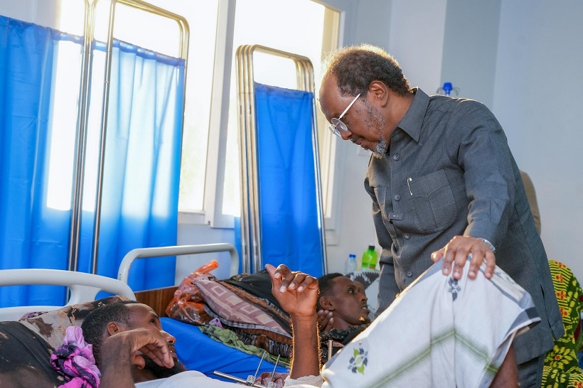 Madaxweynaha Dowladda Federaalka oo u kuurgelayay xaaladda caafimaadeed ee Ciidanka Difaaca Shacabka ayaa ku booqday isbitaalka lagu la tacaalayo xaaladdooda.