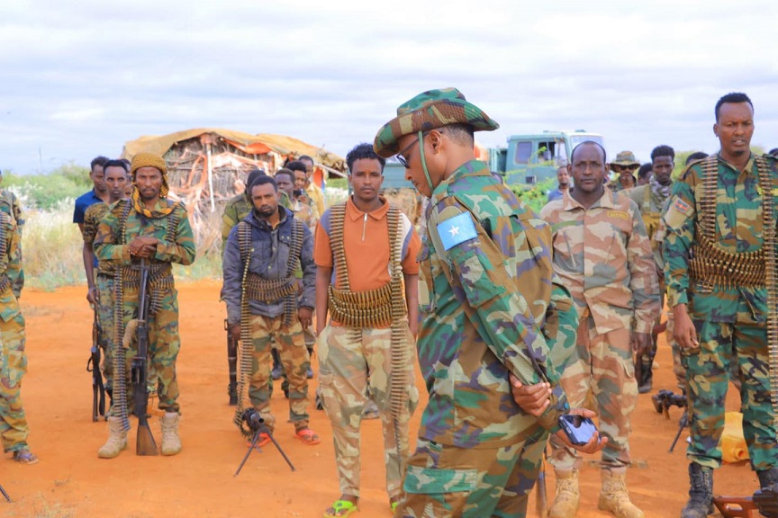 Cabdirashiid Xasan Cabdinuur (Cabdirashiid Janan), Taliyaha Hay’adda Nabad Sugidda & Sirdoonka Qaranka (NISA) ee Jubbaland ahna Madaxa Amniga ee Gobolka Gedo iyo saraakiisha kale ee fadhigoodu yahay Xerada Ciidanka Xoogga Dalka ee UK ee ku taala duleedka bari ee Beledxaawo ayaa halkaasi ku diyaarinaya ciidamada cusub.