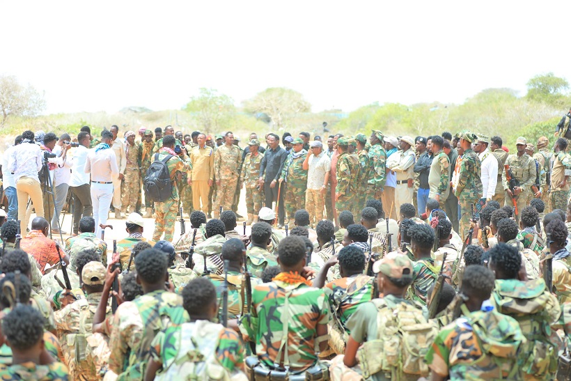 Wasiirka oo ciidamada kula hadlay deegaanka Xaaji Cali oo hoostaga Degmada Cadale ayaa sheegay in ay in muddo ahba difaac ku jireen, haddana la joogo xilligii ay hore u dhaqaaqi lahaayeen.