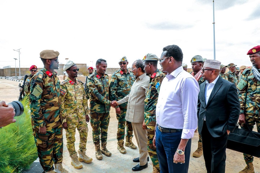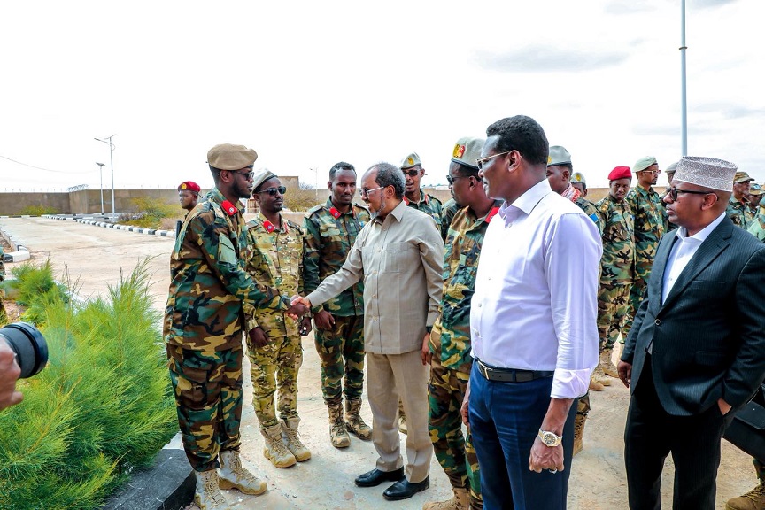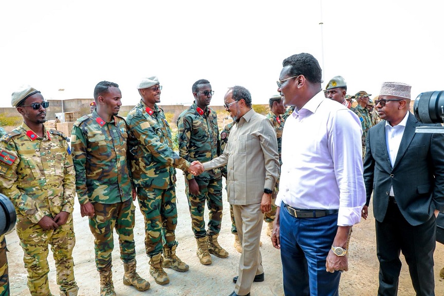 Madaxweynaha Jamhuuriyadda Somaliya, Xasan Sheekh Maxamuud oo maalintii saddexaad ku sugan Magaalada Dhuusamareeb ayaa booqday Xarunta Taliska Qaybta 21aad ee Ciidanka Xoogga Dalka.