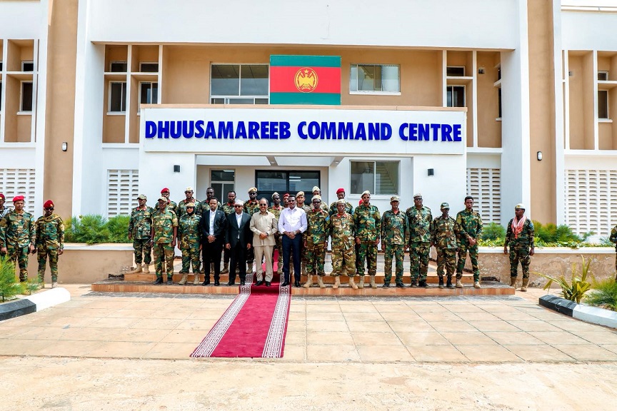 Madaxweynaha Jamhuuriyadda oo ay wehliyaan Wasiirka Gaashaandhiga, Axmed Macalin Fiqi iyo Madaxweynaha Dowlad Goboleedka Galmudug, Axmed Cabdi Kaariye (Qoorqoor) ayaa kormeer ku tagey xarunta taliska uu fadhigiisu yahay Dhuusamareeb.