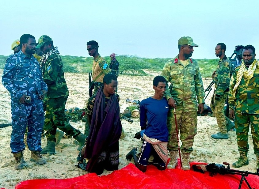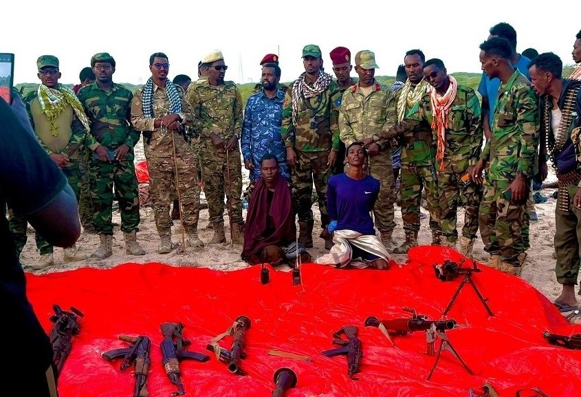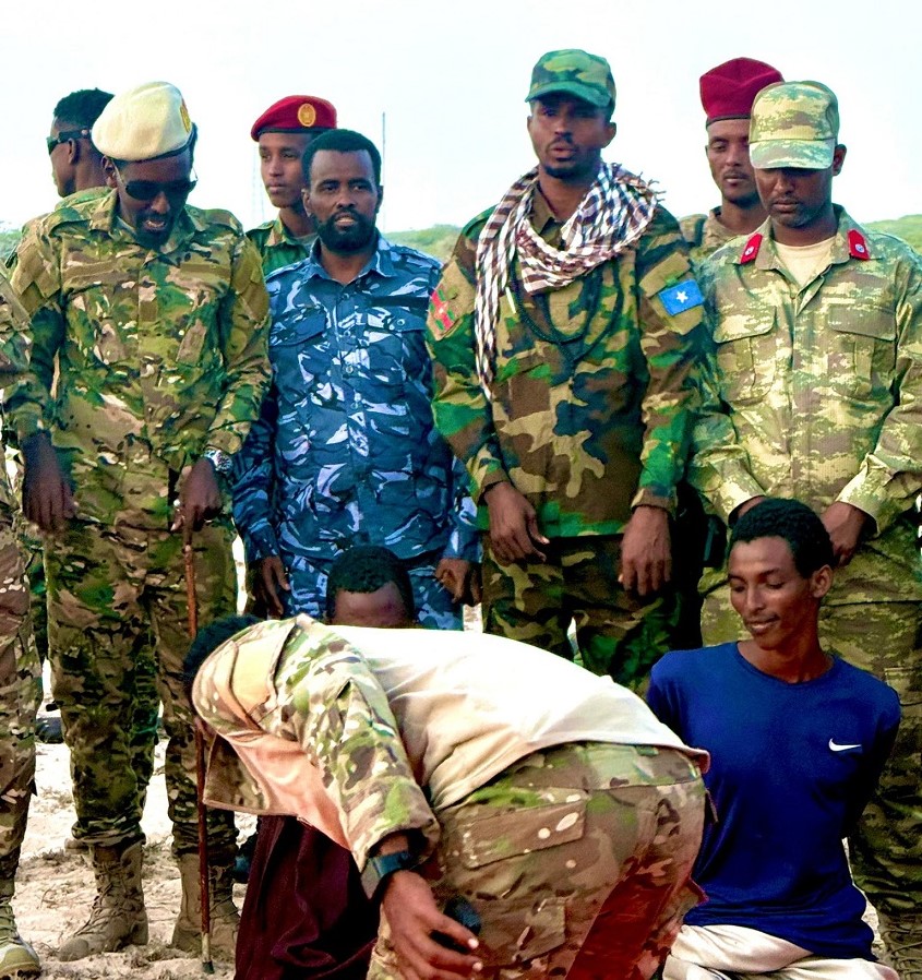 Maxaabiista nolosha lagu qabtay oo laba nin ahaa ayaa soo muuqday iyagoo garbo duub u xiran, waxayna saraakiishu ballanqaadeen in si wanaagsan loola dhaqmi doono, illaa iyo inta lagaga wareejinayo Maxkamadda Ciidamada Qalabka Sida.