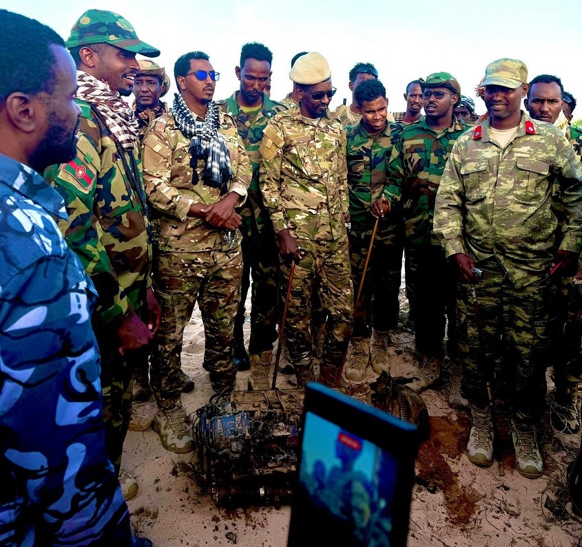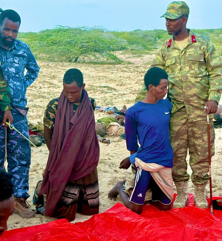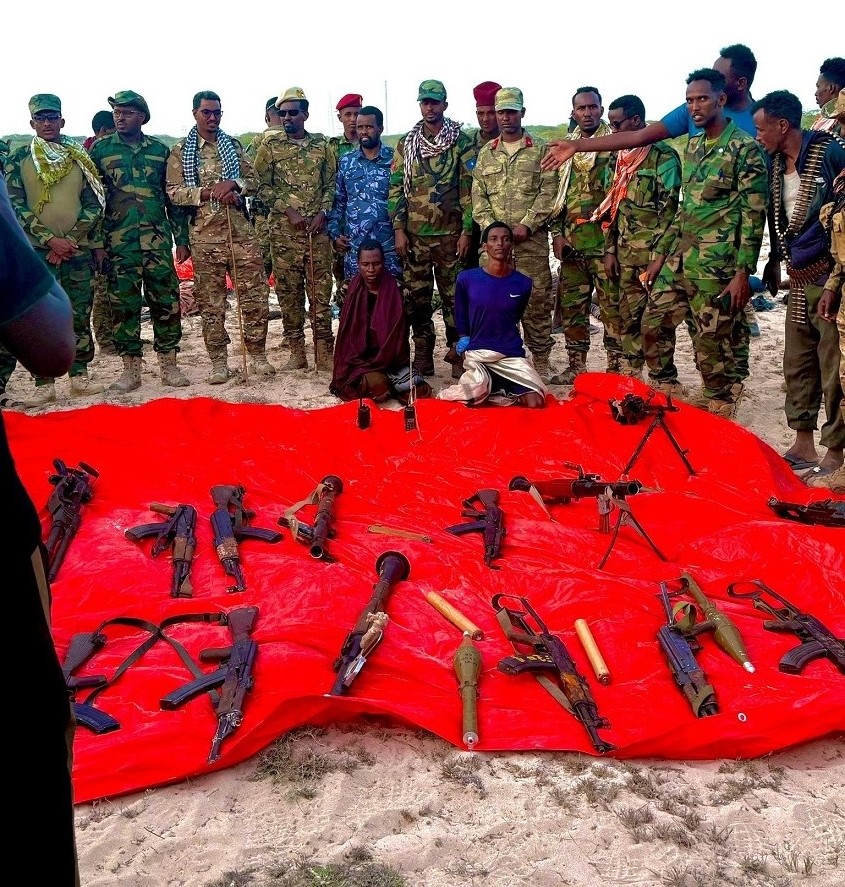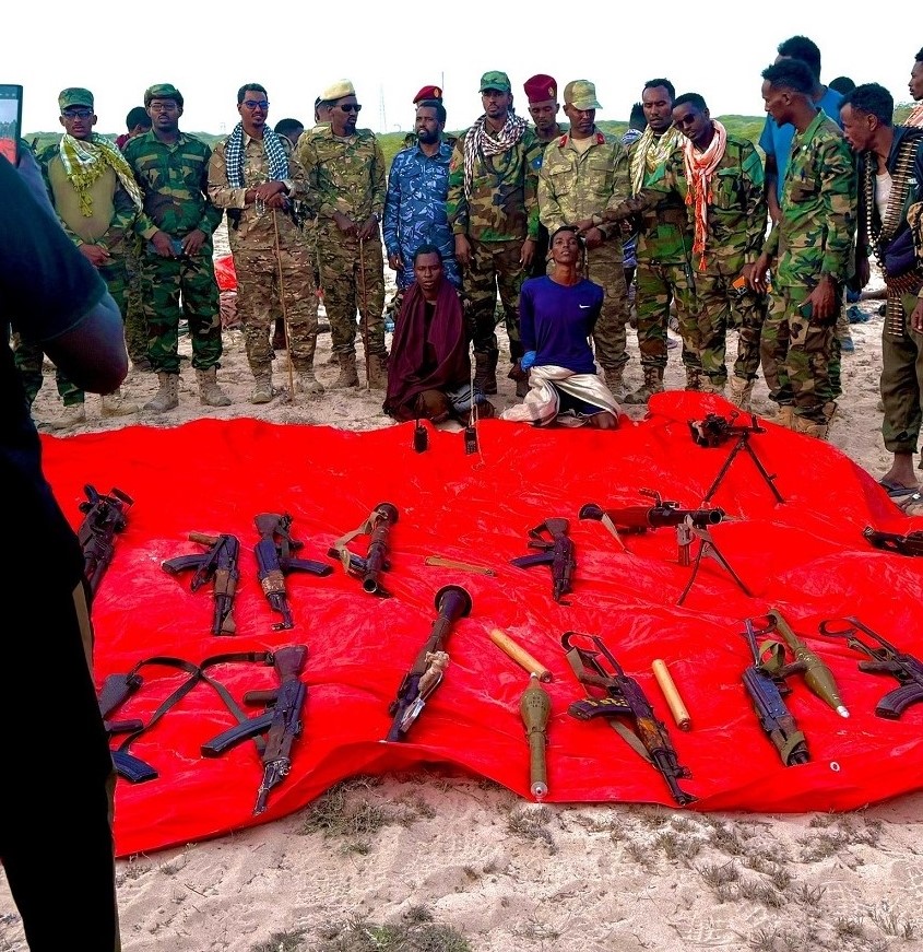 Saraakiisha Ciidanka Xoogga Dalka ayaa maanta Degmada Ceeldheer ee Gobolka Galgaduud ku soo bandhigay maxaabiis nool oo lagu qabtay dagaalkii Jimcihii ka dhacay degmadaasi, meydadka xubno ka tirsanaa maleeshiyada Al Shabaab oo lagu dilay dagaalkaasi iyo hub la sheegay in laga furtay maleeshiyadii weerarka soo qaadday.