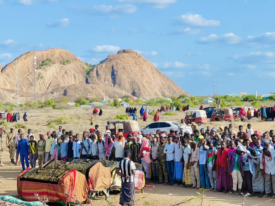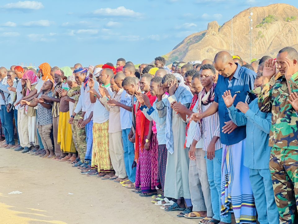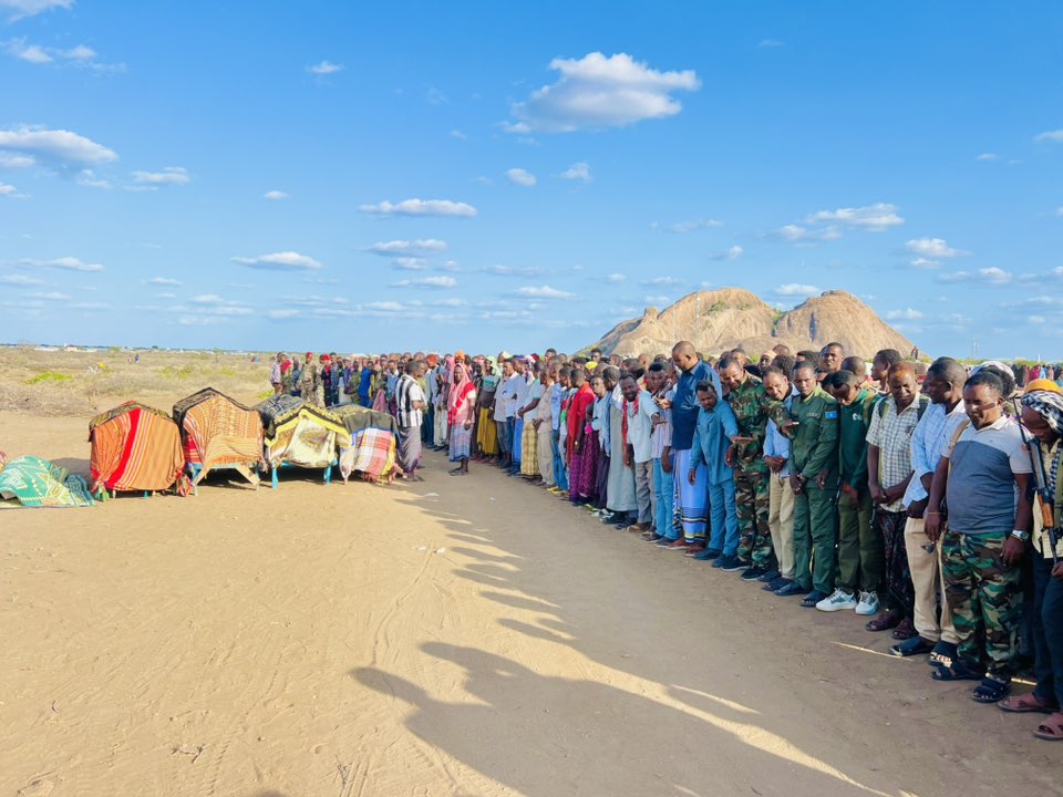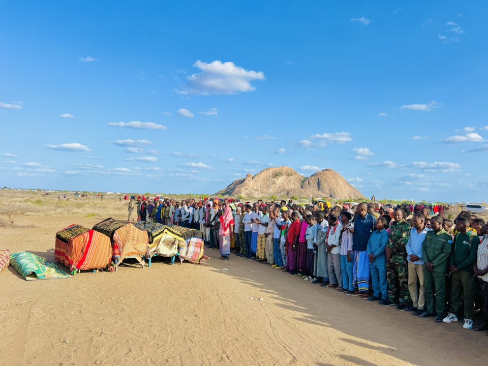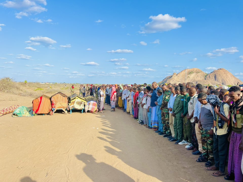 Salaadda Janaasada oo ay ka qaybgaleen qaar badan oo ka mid ah dadka deegaanka ayaa askarta loogu sameeyay fagaare ku yaala bannaanka hore ee magaalada.