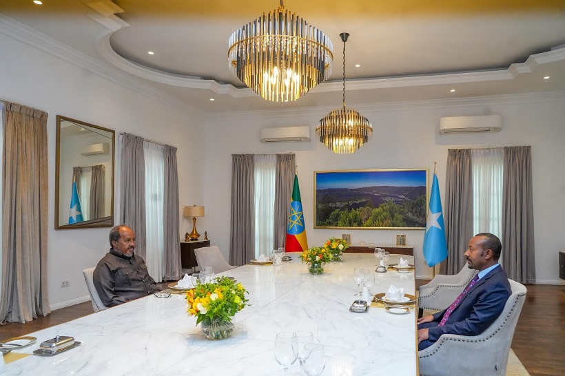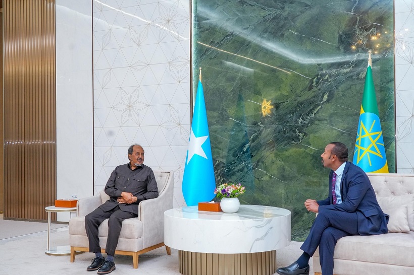 “Madaxweynaha Jamhuuriyadda iyo Raysal Wasaaraha Itoobiya ayaa ka wada hadlay xoojinta xiriirka laba geesoodka ah ee ka dhaxeeya labada dal, iyadoo la dhiirigelinayo iskaashiga horumarineed ee ku salaysan deris-wanaagga iyo is ixtiraamka, si waafaqsan danaha wadajirka ah ee labada dal, madaxbannaanida iyo midnimada dal kasta.” Ayaa lagu yiri war ka soo baxay Villa Somalia.