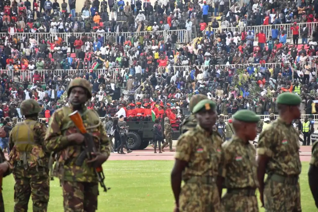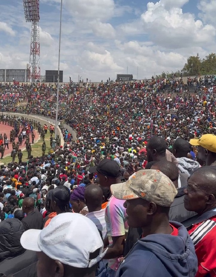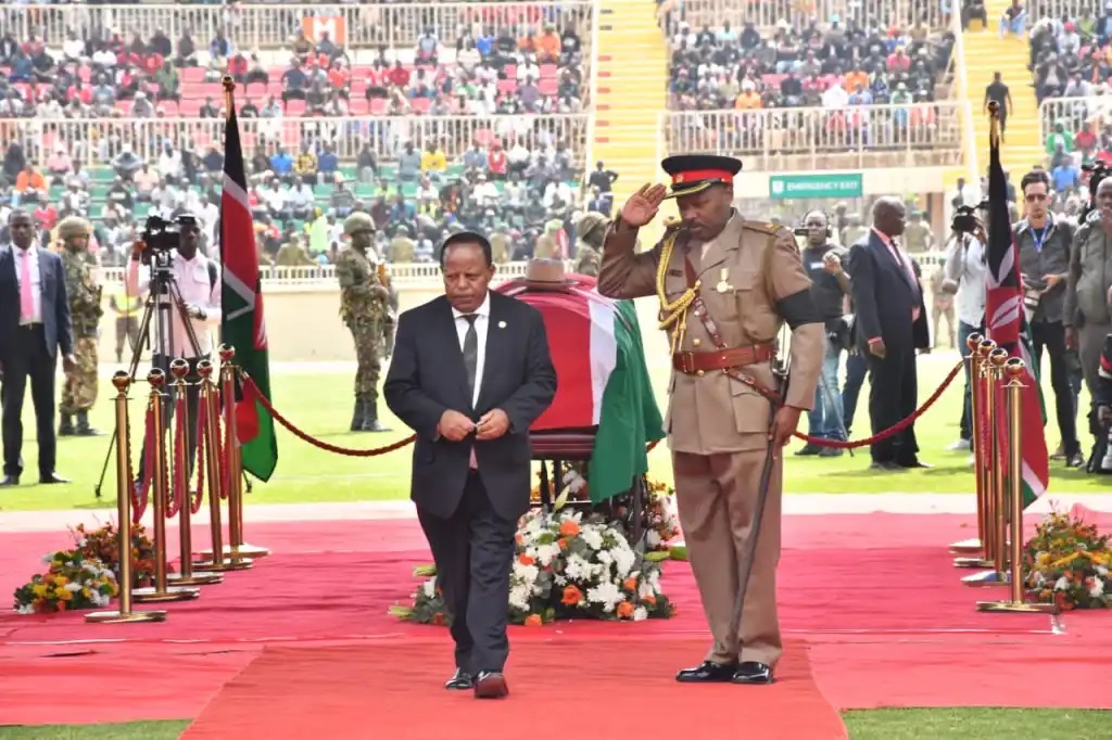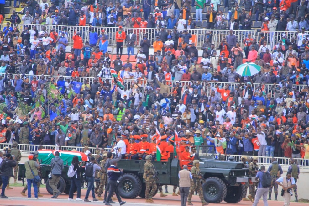 Kumanaan dadweyne ah ayaa soo buuxiyay Garoonka Kubadda Cagta ee Nyayo, iyagoo qoyskiisa iyo xubnaha xulafada siyaasadeed u muujinaya, sida ay uga murageysan yihiin geerida ku timid.