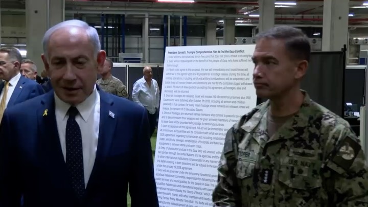 Xafiiska Netanyahu Israel ayaa sheegay in Raysal Wasaaruhu uu booqday xarunta uu Maraykanku hoggaamiyo ee Kiryat Gat ee xoogaga caalamiga ah ee kormeeraya xabad joojinta Gaza.
