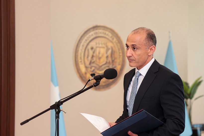Madaxweynaha Jamhuuriyadda Somaliya, Xasan Sheekh Maxamuud ayaa Arbacadan waraaqaha aqoonsiga ee safiirnimo ka guddoomay sideed Safiir, kuwaas oo siyaabooyin kala duwan uu ugu qaabilay Xarunta Madaxtooyada Qaranka ee Magaalada Muqdisho.