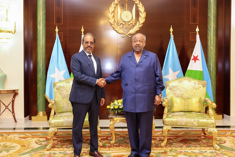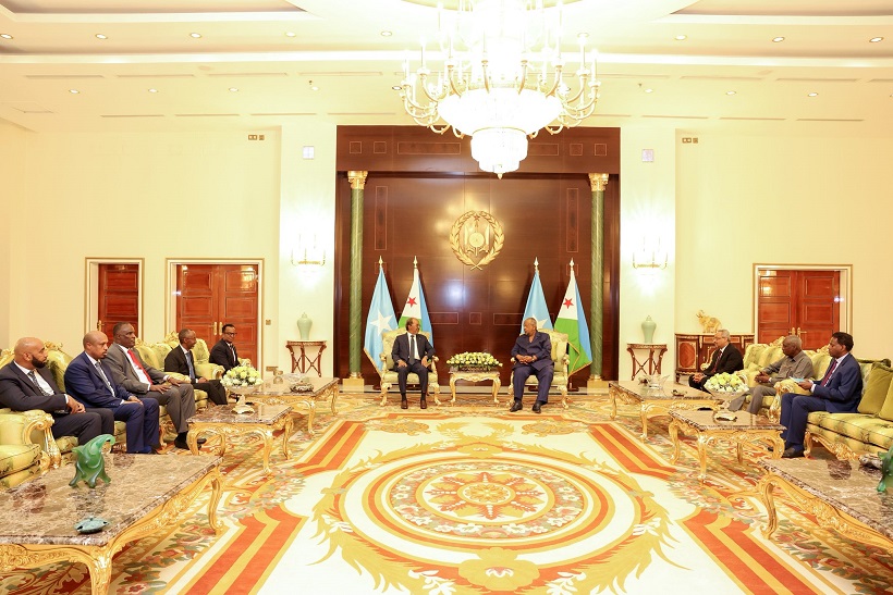Madaxweynaha Jamhuuriyadda Somaliya, Xasan Sheekh Maxamuud ayaa maanta gaaray Magaalada Djibouti, isagoona kulan gaar ah la yeeshay Madaxweynaha Jamhuuriyadda Jabuuti, Ismaaciil Cumar Geelle.