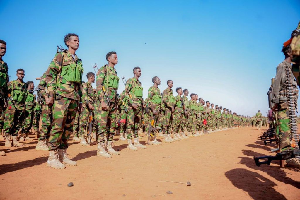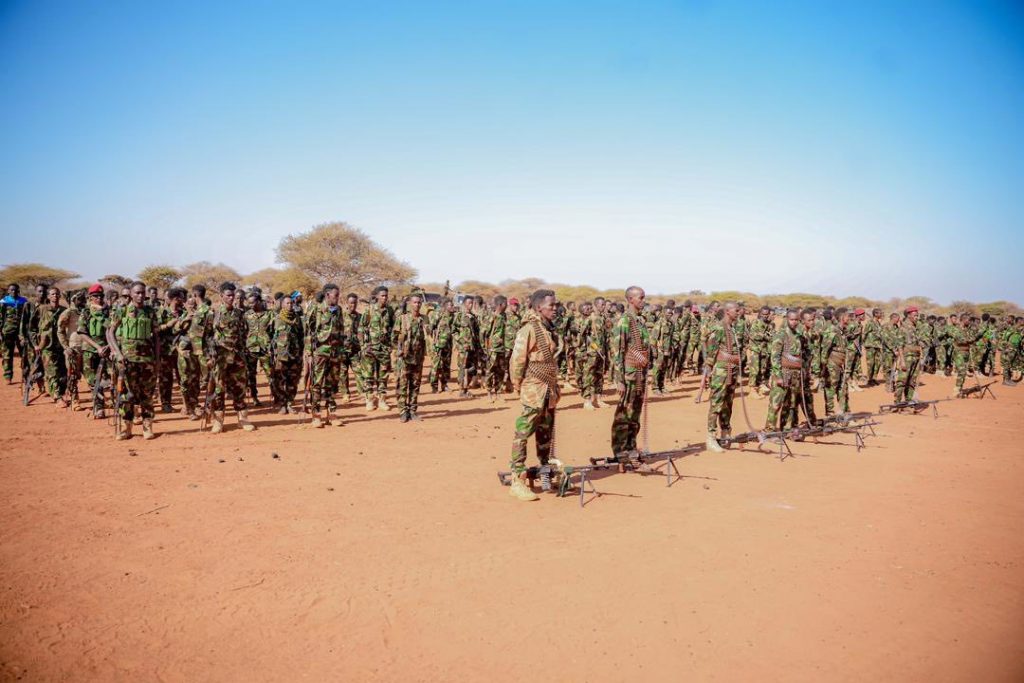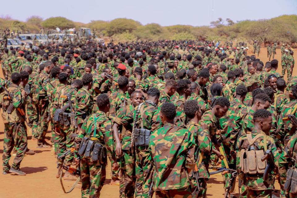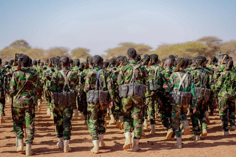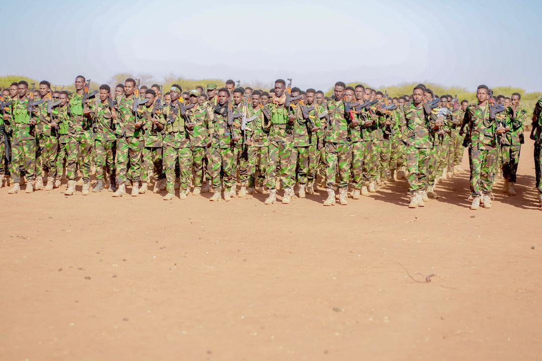 Khamiistii ciidamo fara-badan oo sida la sheegay tababar loo soo geba-gabeeyay ayaa lagu soo bandhigay duleedka magaalada, iyadoo Taliska Militariga Somaliya uu u dhameystiray qalabkii ay ku hawlgeli lahaayeen.