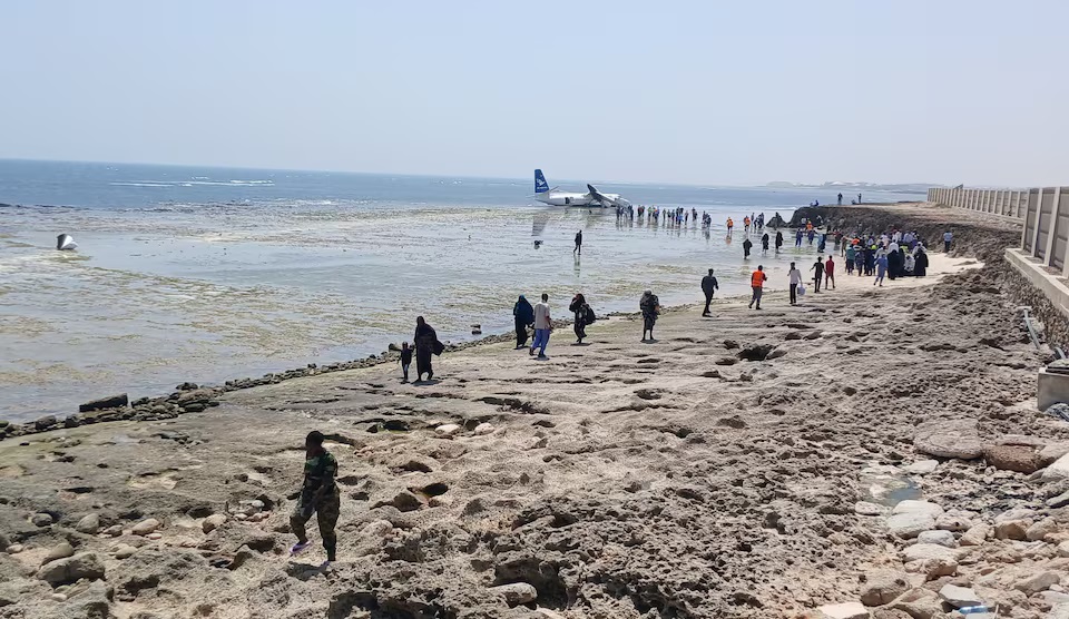 The plane, a Fokker 50 operated by Starsky Aviation, sustained an unspecified technical issue soon after takeoff on Tuesday. It was forced to return to Mogadishu’s Aden Adde International Airport, where it skidded off the runway, only coming to a stop near the seashore.