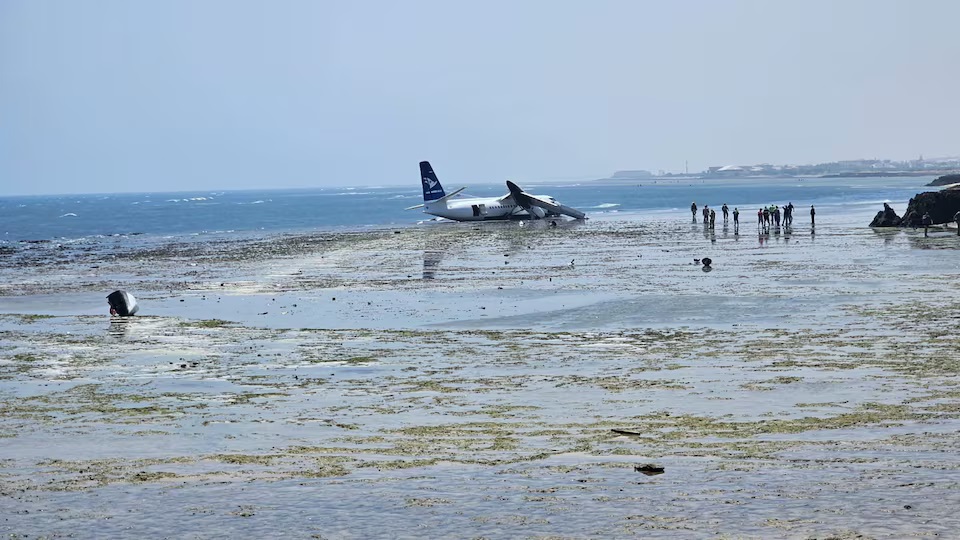 The plane, a Fokker 50 operated by Starsky Aviation, sustained an unspecified technical issue soon after takeoff on Tuesday. It was forced to return to Mogadishu’s Aden Adde International Airport, where it skidded off the runway, only coming to a stop near the seashore.