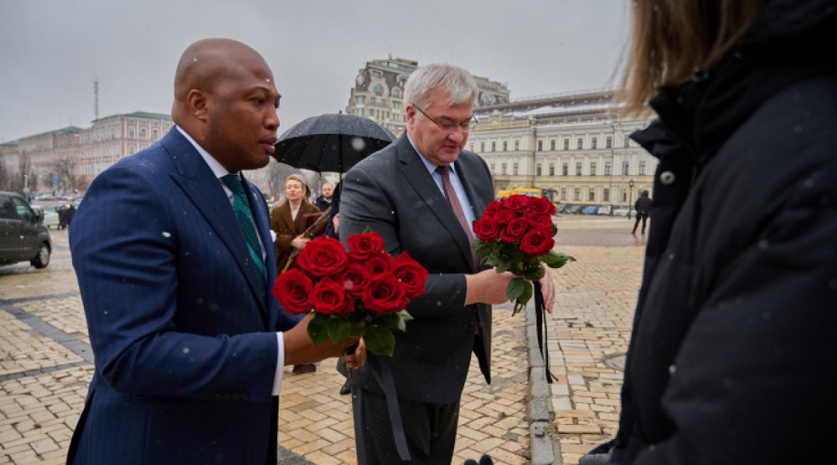 Wasiir Ablakwa iyo dhiggiisa Ukraine ayaa booqday darbiga xusuusta ee Ukraine, iyagoona ubax dhigay. Gidaarka xusuusta ee Ukraine oo laga sameeyay Kyiv ayaa lagu xusuustaa dadka naftooda u huray difaaca madaxbannaanida iyo qaranimada ee Ukraine.