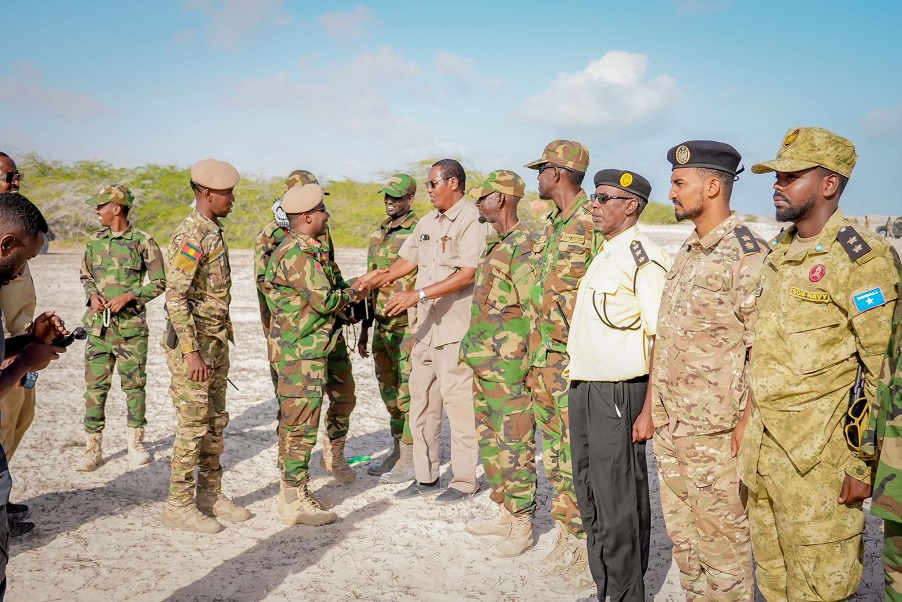 Taliska Militariga oo xalay war ka soo saaray kormeerka Taliyaha ayaan lagu sheegin goobta rasmiga ee uu ciidamadu ku booqday, iyadoo Taliyuhu uu watay diyaarad helicopter ah.