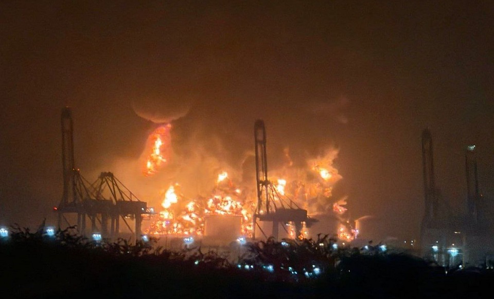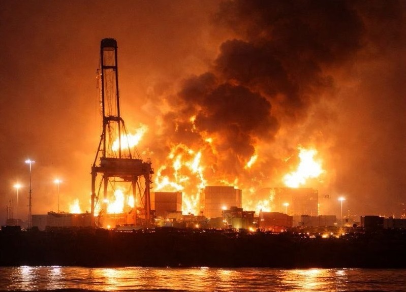 Saraakiisha Cumaan ayaa laga soo xigtay in dabku uu cagta mariyay dhowr ka mid ah haamihii yiilay qaybta shidaalka lagu kaydiyo ee dekedda.